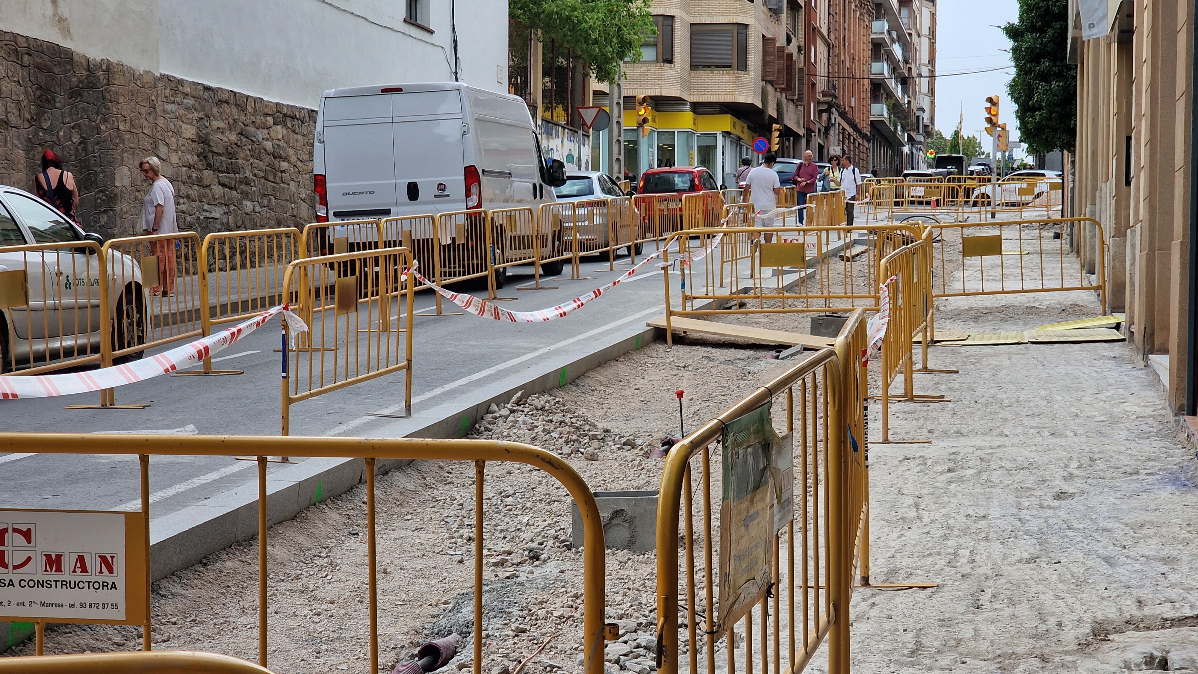 Obres al carrer Saclosa de Manresa per ampliar la vorera