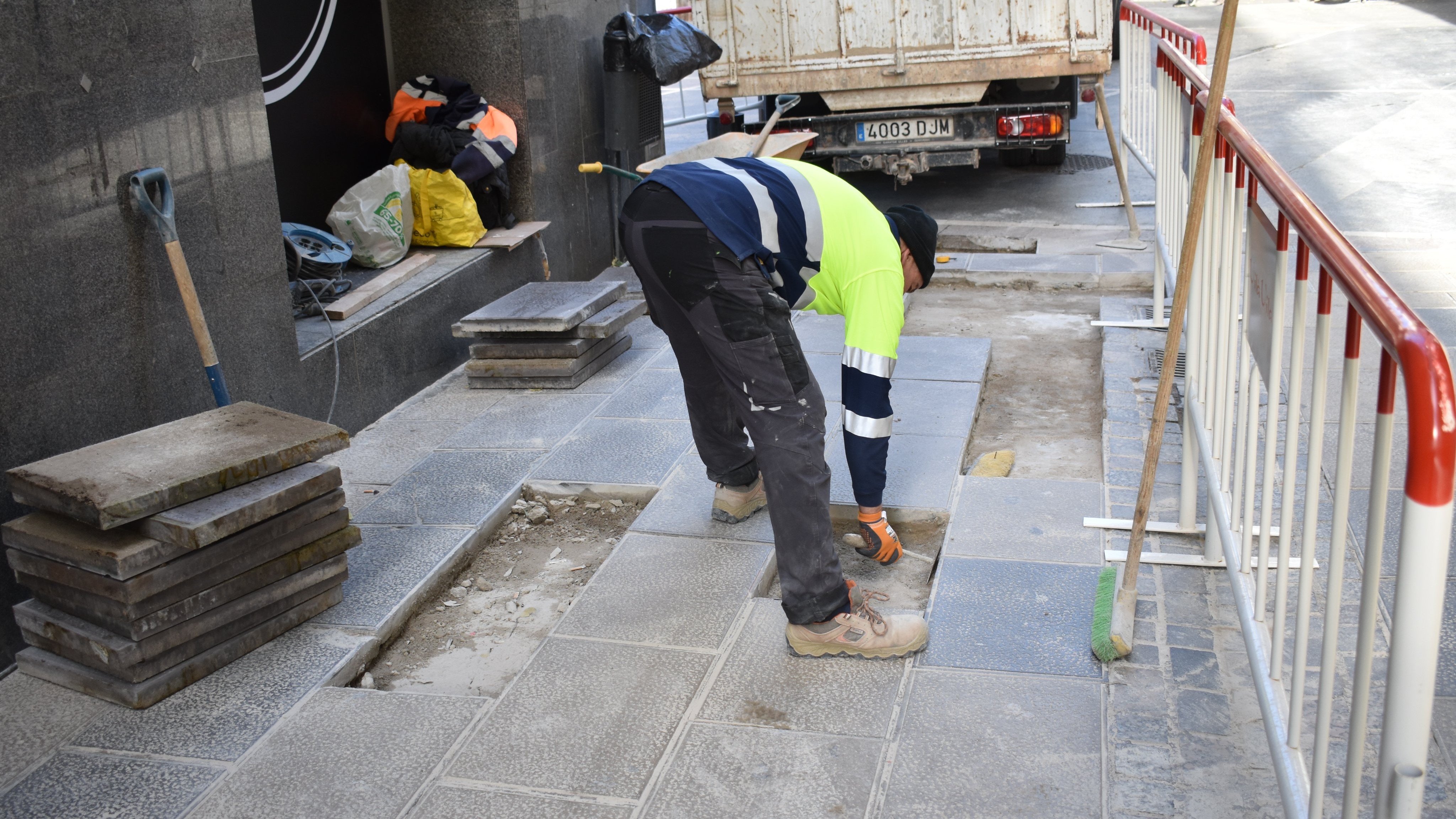 Treballs de substitució de rajoles en mal estat a carrers del Centre Històric i al primer tram del Passeig