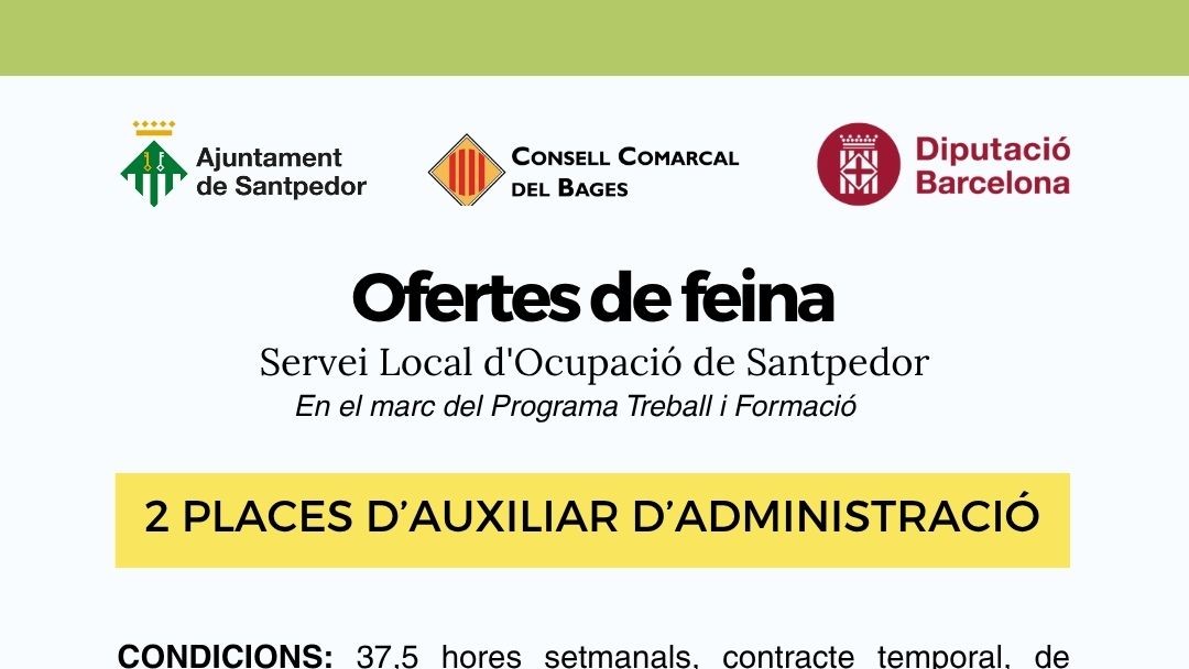 Obert el procés de selecció per a dues places d'auxiliar d'administració