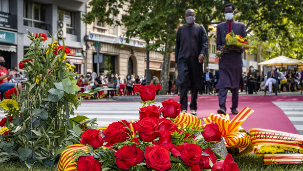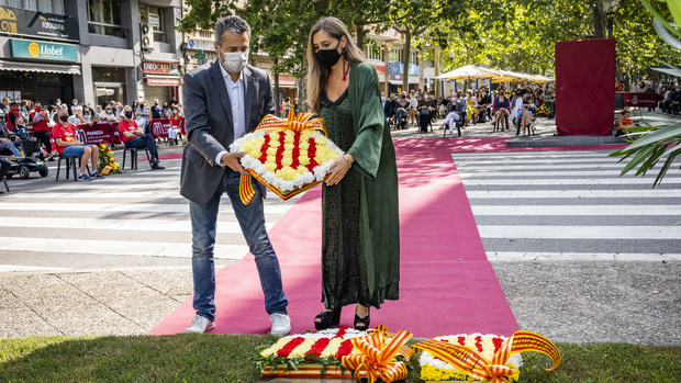 L'ofrena floral de la Diada omple la plaça Onze de setembre