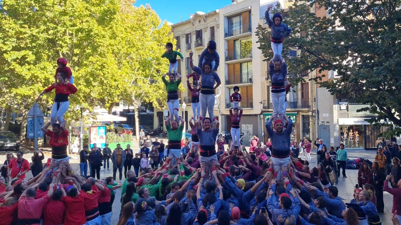 La diada castellera de Sant Martí omple la plaça de Neus Català de Manresa