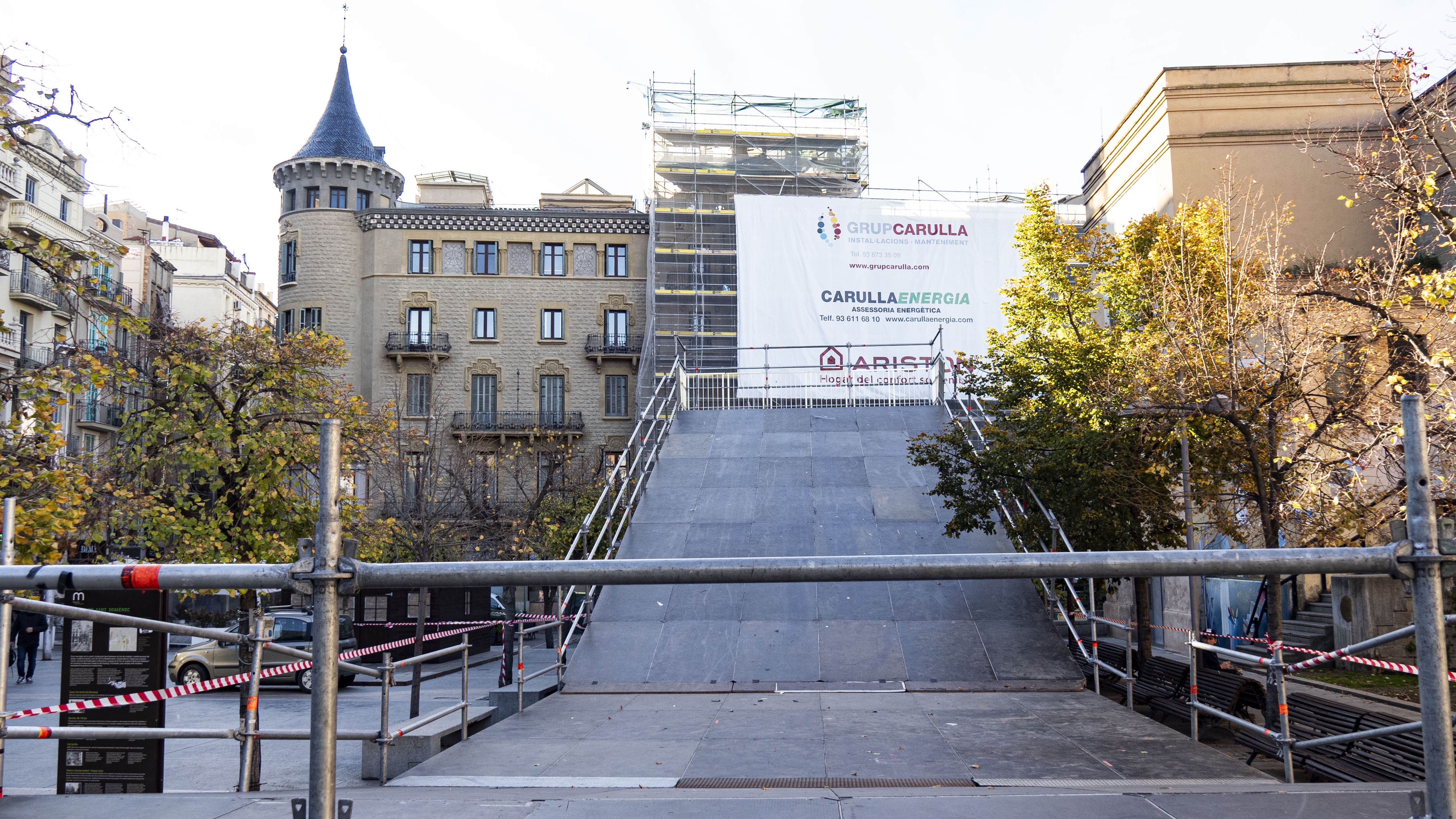 Muntatge de la renovada plaça de Nadal