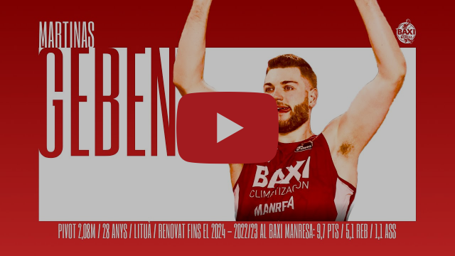 Martinas Geben allarga la seva vinculació amb el BAXI Manresa. El pivot lituà, de 28 anys i 2,08 metres, és ja conegut per l'afició bagenca després d'arribar el mes de desembre al Nou Congost. Geben va ser un jugador fonamental per redreçar l'equip la passada campanya, en què va fer unes mitjanes de 9,7 punts i 5,1 rebots.