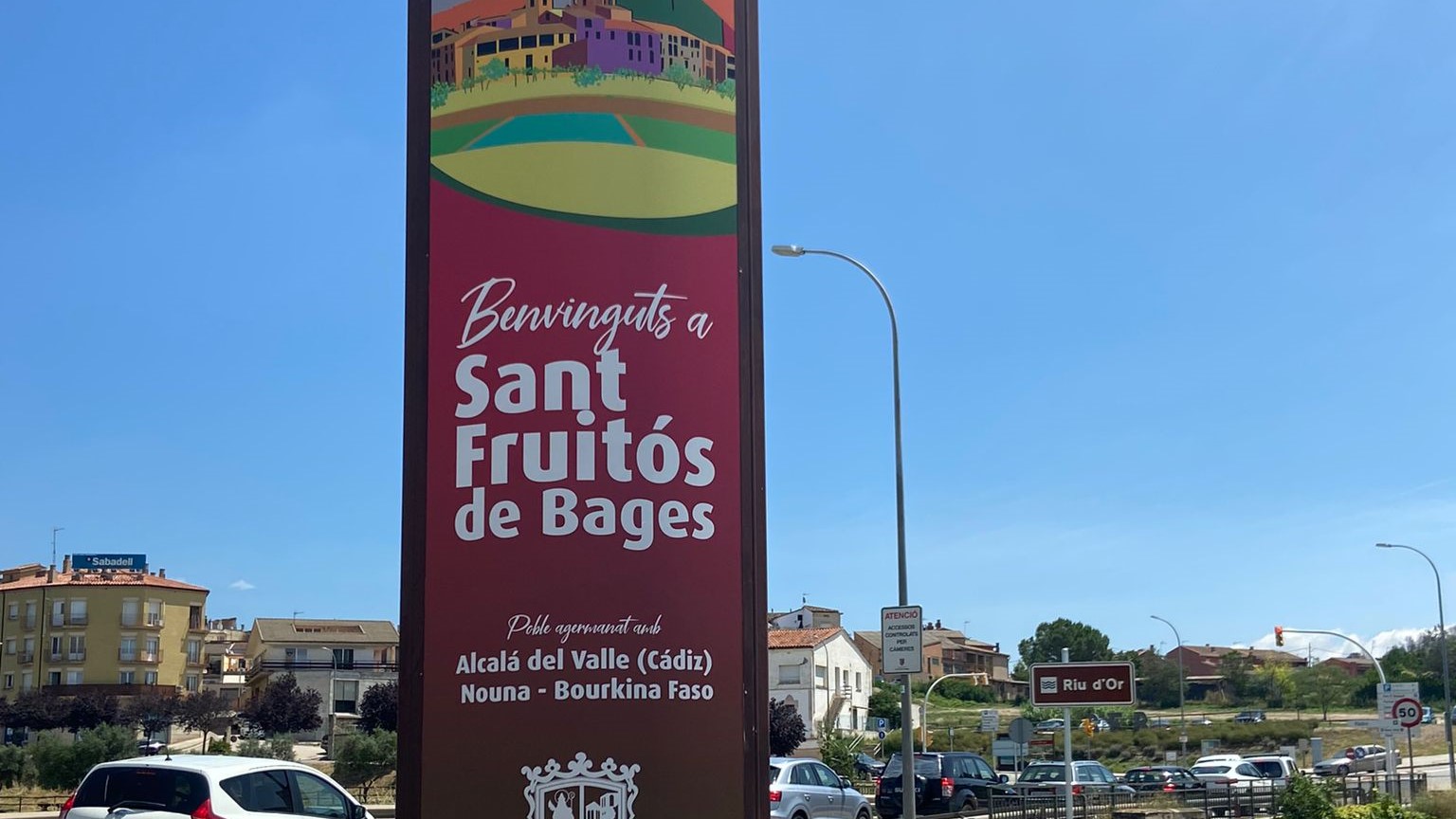 El disseny també inclou els municipis agermanats amb Sant Fruitós de Bages: Nouna , a Burkina Faso, i Alcalá del Valle a Cádiz. Aquestes estructures de grans dimensions estan ubicades a les dues entrades al nucli del municipi, venint de La Rosaleda i de Torroella de Baix i hi ha un tercer element sota la passera de la C-16, al polígon Casa Nova. Aquests elements ja es trobaven ubicats en aquests mateixos punts però presentaven molt desgast degut al pas del temps i un disseny més clàssic.