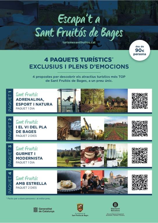 Des d'aquest mes de juliol Sant Fruitós de Bages pot descobrir-se des de tots els seus vessants a través de quatre paquets turístics que ha impulsat l'Ajuntament per tal de donar a conèixer els atractius del municipi i tot allò que s'ofereix al visitant.