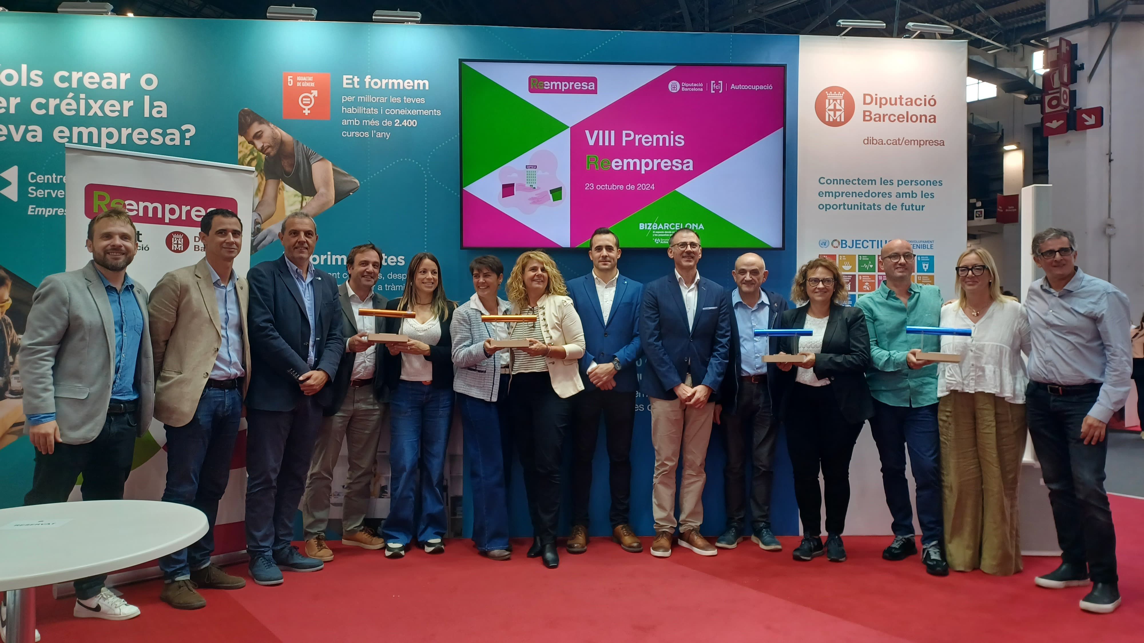 El gerent de Serveis de Promoció Econòmica i Ocupació de la Diputació de Barcelona, Roger Pumares; el secretari general de la patronal Cecot, Oriol Alba; i el director de la Fundació Privada per a la promoció de l’Autoocupació de Catalunya, Guillem Arís, han lliurat els guardons aquest dimecres durant un acte de reconeixement en el marc del saló Bizbarcelona. En concret, el punt local Reempresa de l’Ajuntament de Santa Coloma de Gramenet ha assolit enguany la xifra de 22 empreses transmeses; l'Ajuntament de Castelldefels, 17, i el de Manresa i el Consorci per a la Promoció dels municipis del Moianès, 15.