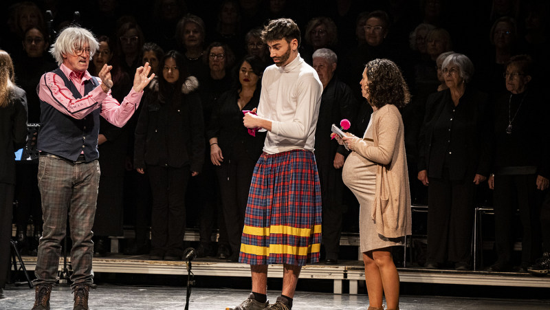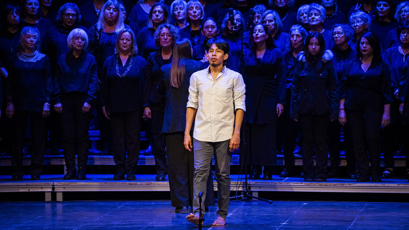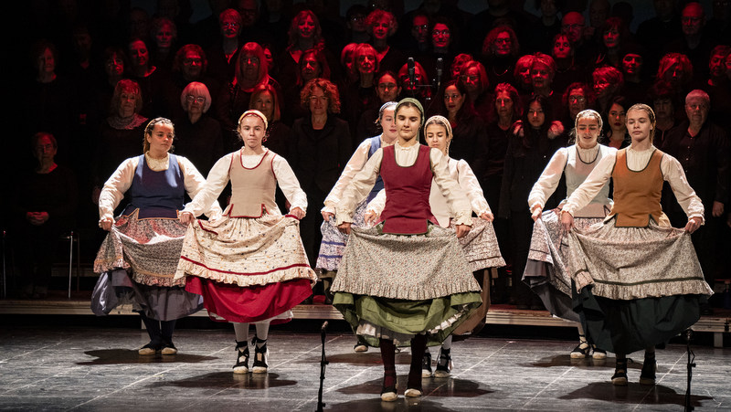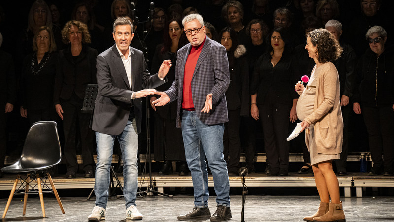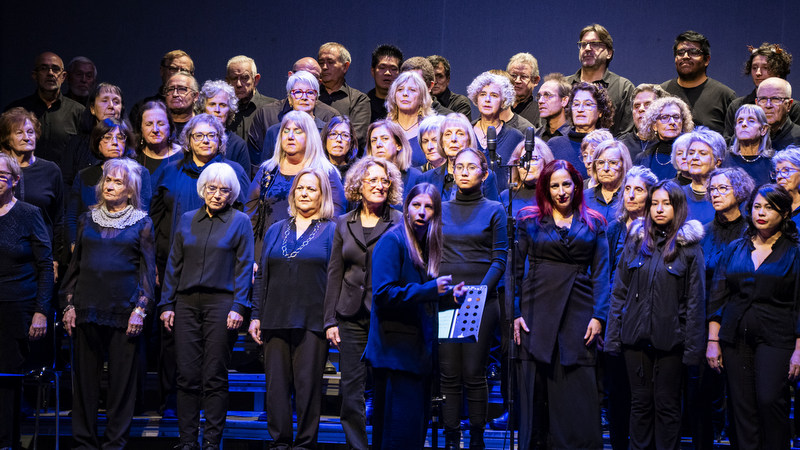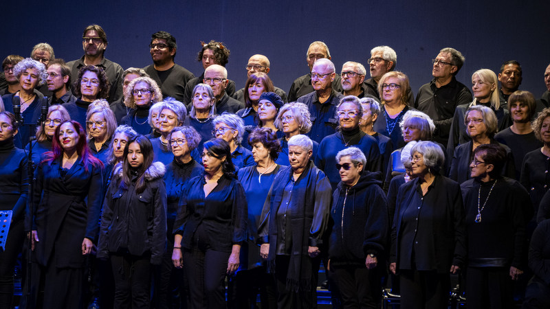 Un centenar i mig de cantaires, actors i ballarins van pujar a l'escenari del Teatre Conservatori de Manresa per participar en un muntatge que uneix grups de Manresa i comarca.
