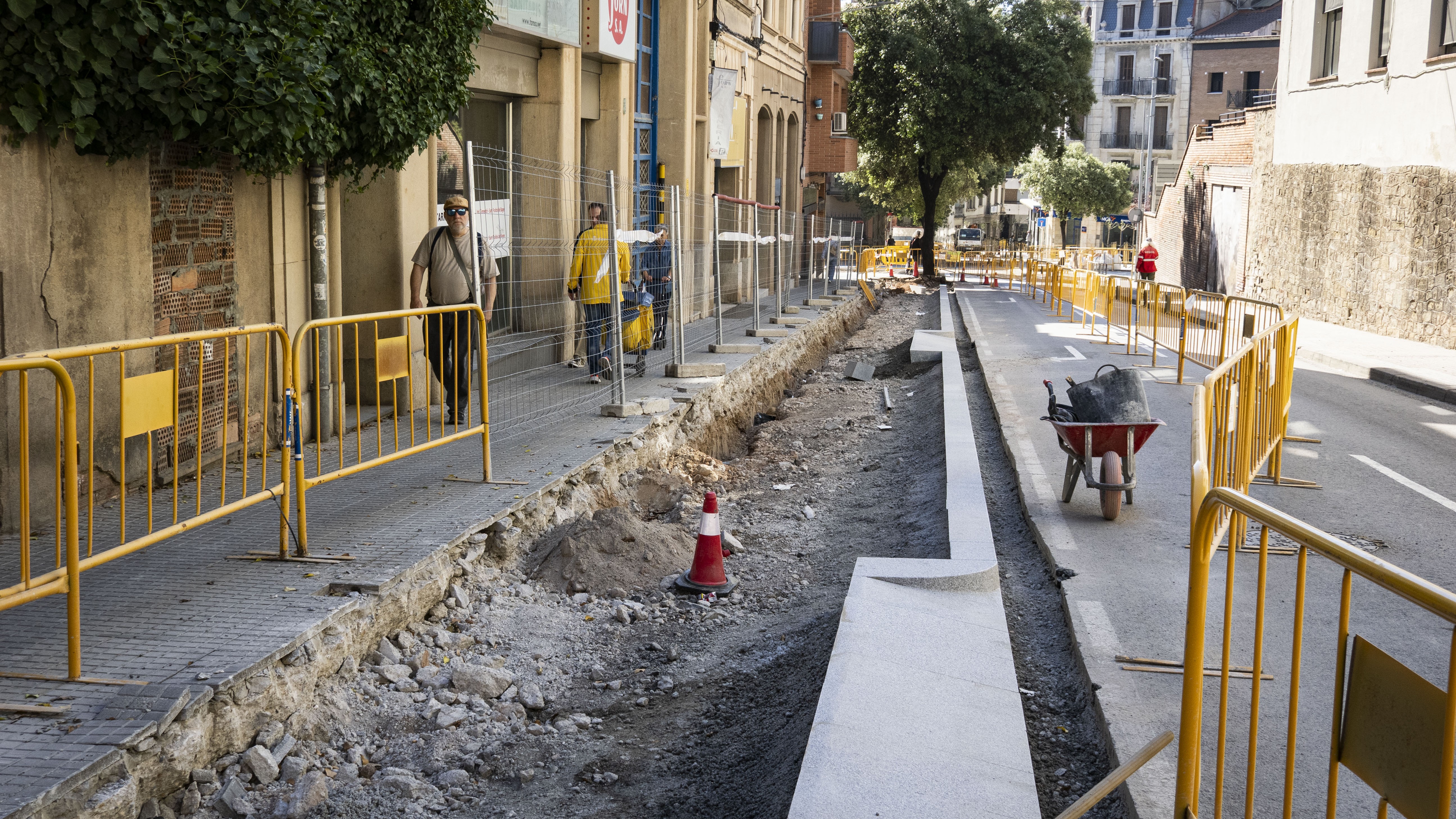 Obres al carrer Saclosa de Manresa per ampliar la vorera