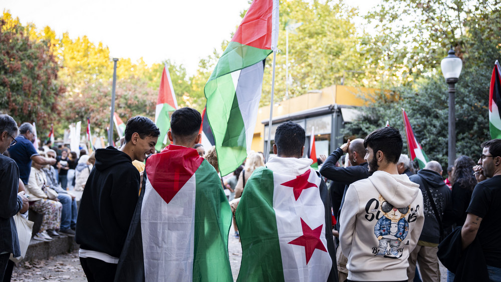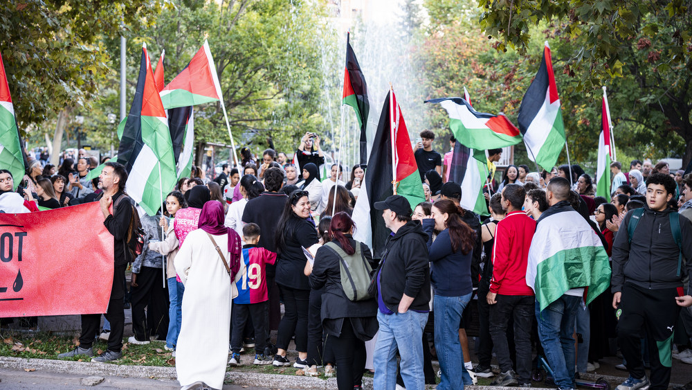 Centenars de persones es van concentrar a la plaça Espanya de Manresa per donar suport al poble palestí. Els manifestants cridaven consignes per la llibertat de Palestina. Molts dels assistents hi van anar amb pancartes.