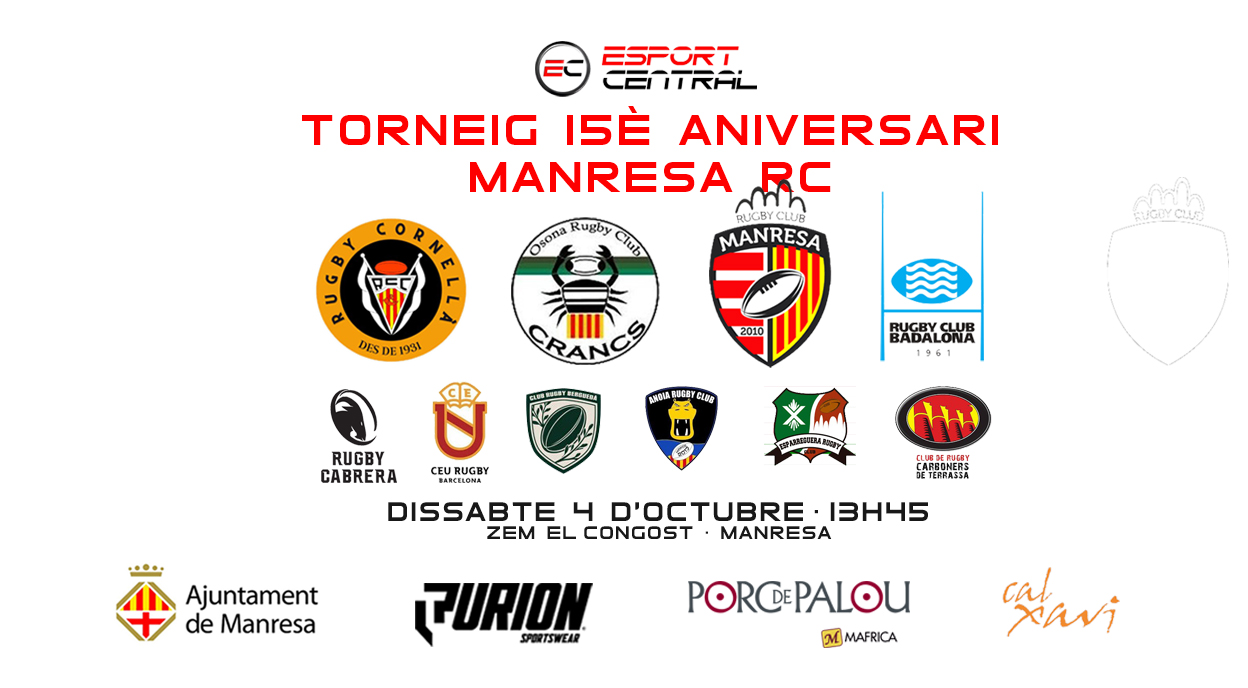 Amb la voluntat d'anar introduint altres modalitats esportives en les seves retransmissions, Esport Central oferirà en directe dos partits dins del 15è aniversari del Manresa Rugby Club. Serà aquest dissabte a partir de les 13h45 al seu canal a Twitch.