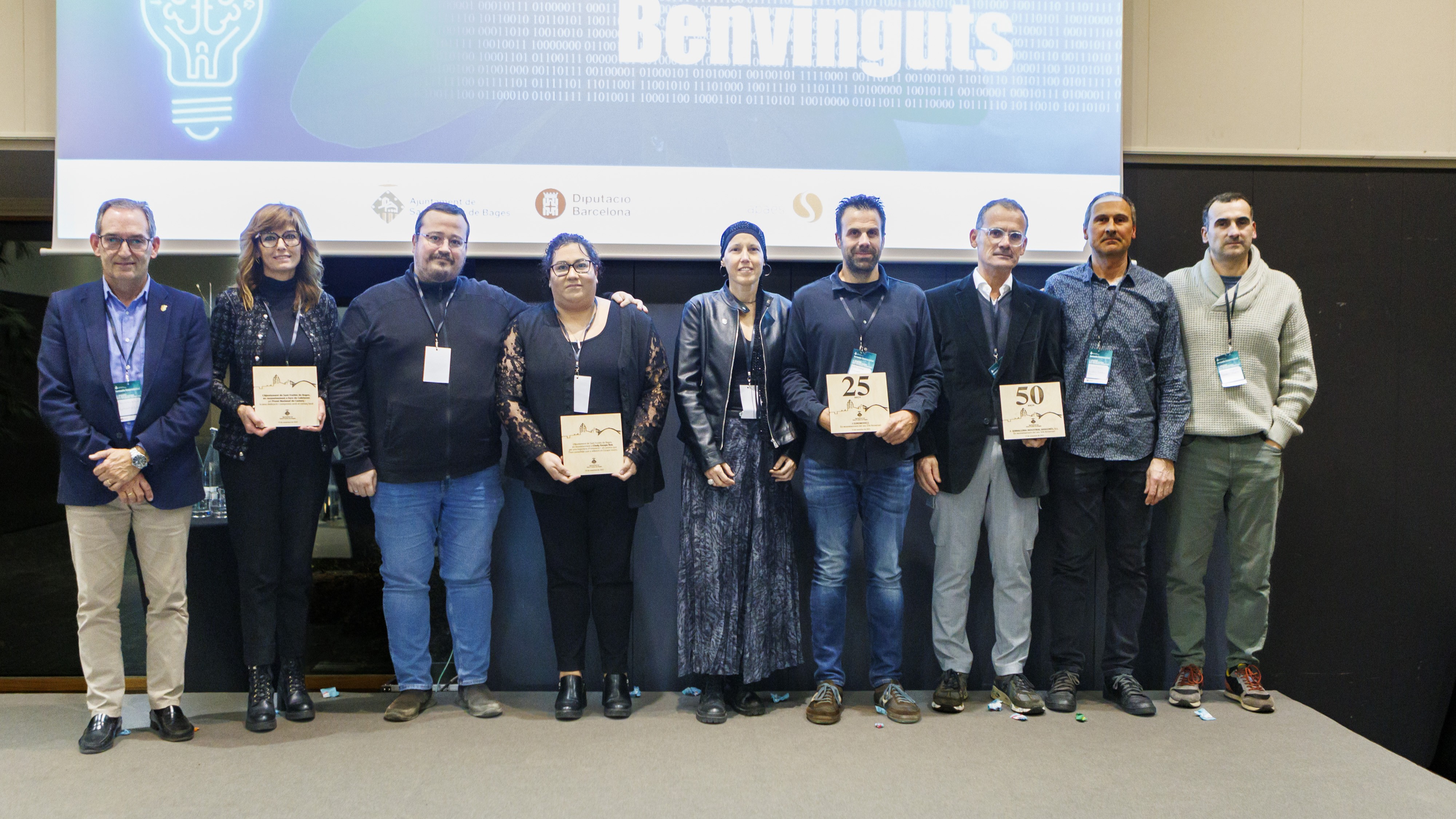 Posteriorment, els assistents han participat en una dinàmica pràctica orientada a identificar com incorporar eines d’IA en el seu dia a dia professional. La sessió ha culminat amb un improshow que, amb to lúdic i humorístic, ha contribuït a reforçar els conceptes tractats al llarg de la trobada. El moment més emotiu de la jornada ha estat el lliurament dels Premis a la Trajectòria Empresarial. Enguany, han estat reconegudes Euromodels i Decapats del Bages pels seus 25 anys d’activitat, i Serralleria Industrial Aragonès pels seus 50 anys de dedicació. L’establiment Cindy Escape Box ha rebut un guardó especial per la innovació. Finalment, el Premi Especial de la Jornada ha recaigut en Forn de Cabrianes, que enguany ha estat distingit també amb el Premi Nacional de Comerç, atorgat per la Generalitat de Catalunya.