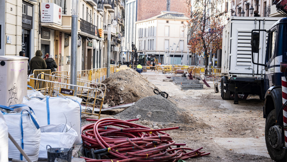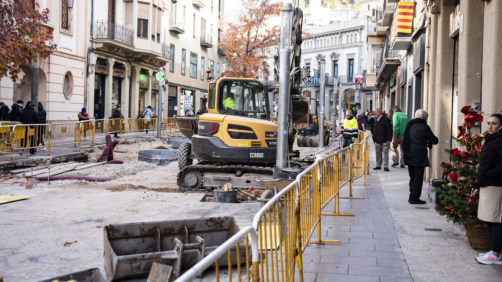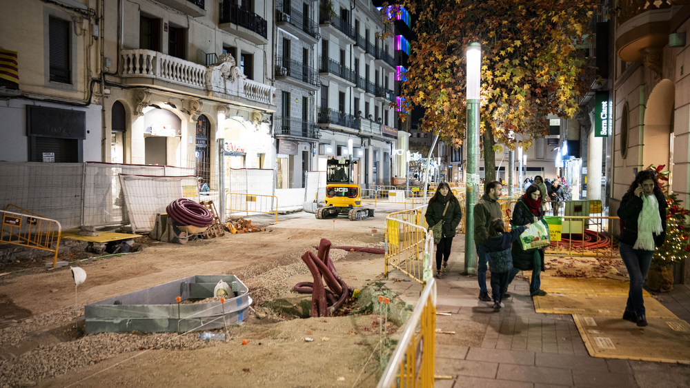 El carrer Àngel Guimerà ja mostra un canvi de cara molt important i amb les obres avançant ràpidament, les obres coincideixen amb la campanya de Nadal, amb el carrer guarnit amb arbres davant els aparadors de les botigues.