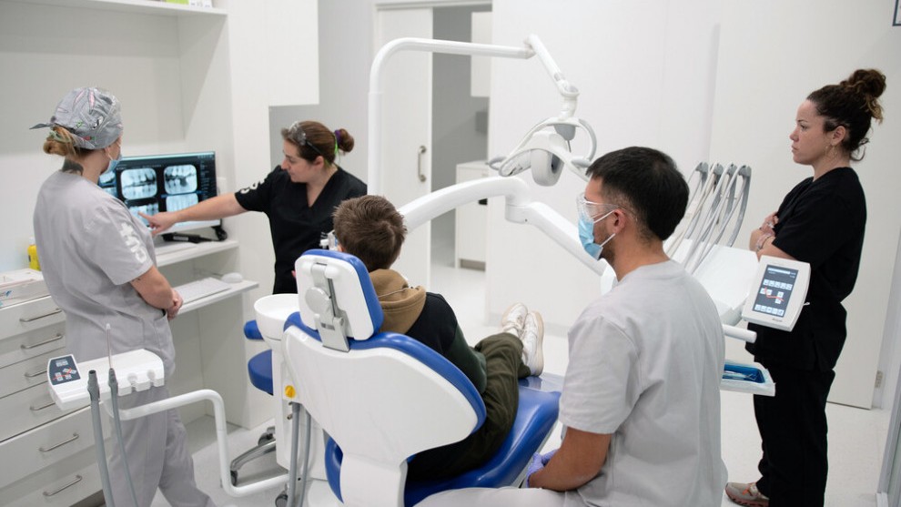 Un dels trets distintius de la Clínica és que acull, en un mateix edifici, la formació del grau en Odontologia i del Cicle Formatiu de Grau Superior de Pròtesis Dentals. Aquesta convivència facilita el contacte directe entre futurs odontòlegs i protètics dentals, dues professions que treballen estretament en l’activitat assistencial i que, a UManresa, poden compartir espais, tecnologia i experiències durant l’etapa formativa.
