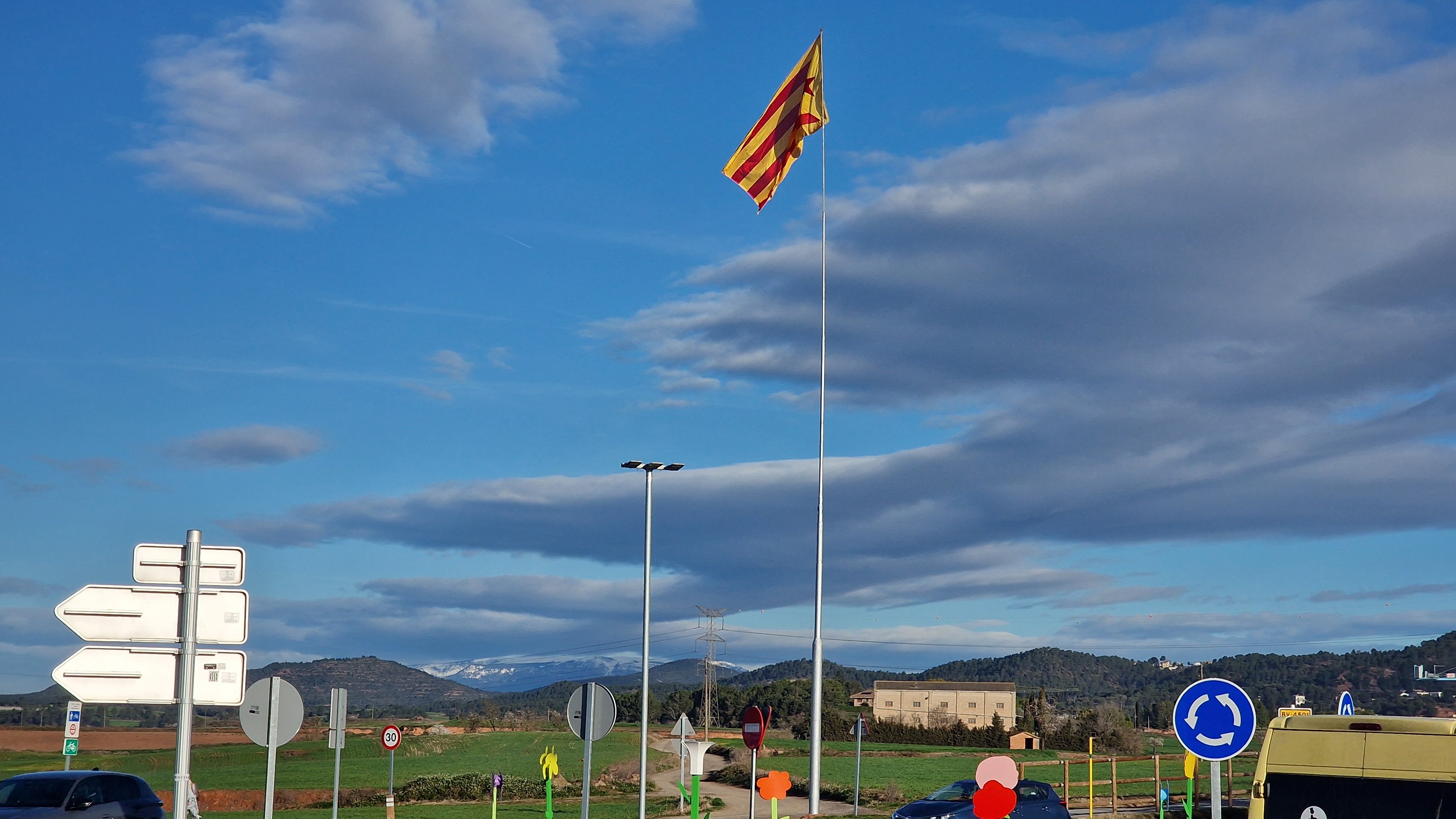 L'estelada a la rotonda de Comabella, a l'altura del Garden d'AMPANS, oneja des de fa pocs dies.