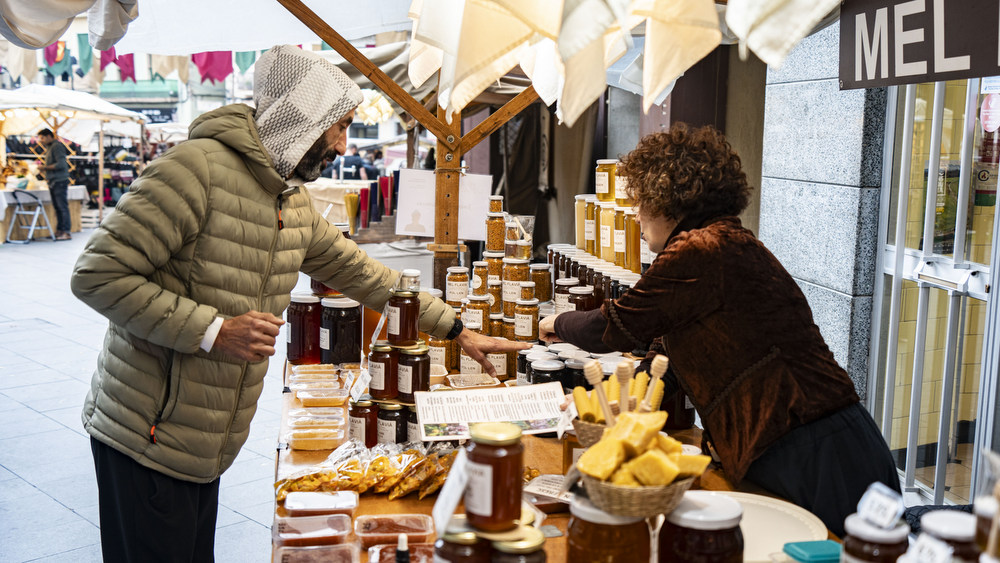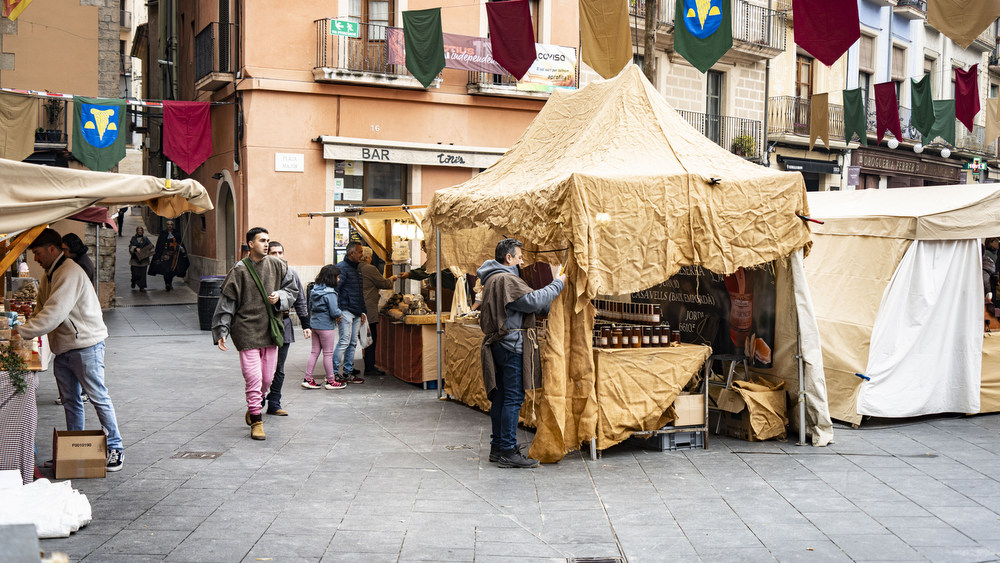 Un passeig per algunes de les parades de la Fira de l'Aixada de Manresa, artesans, alimentació, entre molts altres productes, i les tavernes, per poder fer una parada per dinar o sopar.