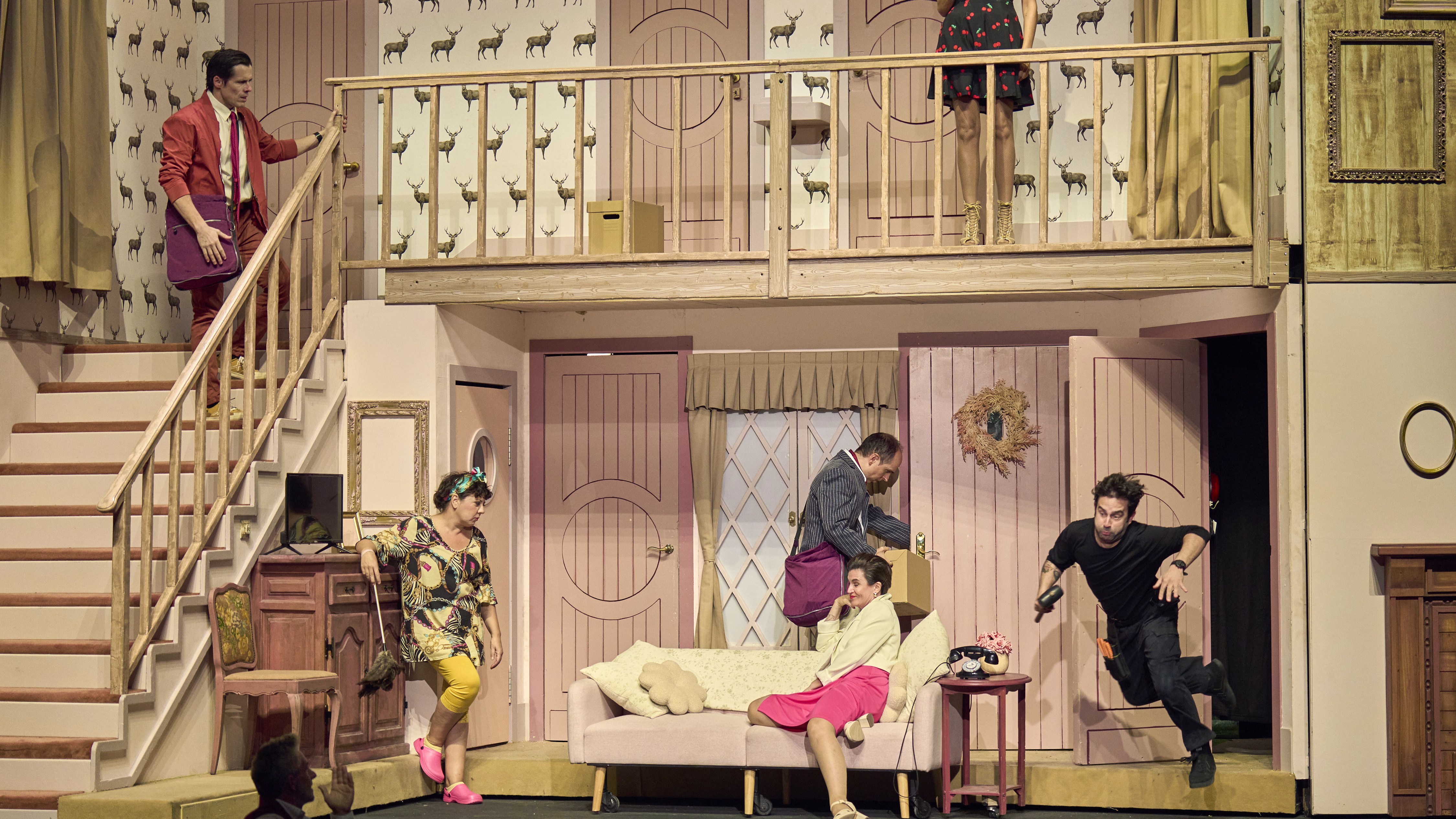 Hi ha comèdies que mai no passen de moda, veritables clàssics que periòdicament mereixen un espai en les nostres cartelleres. És el cas de ‘Pel davant... i pel darrera’ (‘Noises off’) i escrita el 1982 per Michael Frayn que, en versions diverses, s’ha pogut veure en més de cinquanta països i ha estat traduïda a vint-i-vuit idiomes, i de la qual es fan reposicions continuades tan al West End com a Broadway.