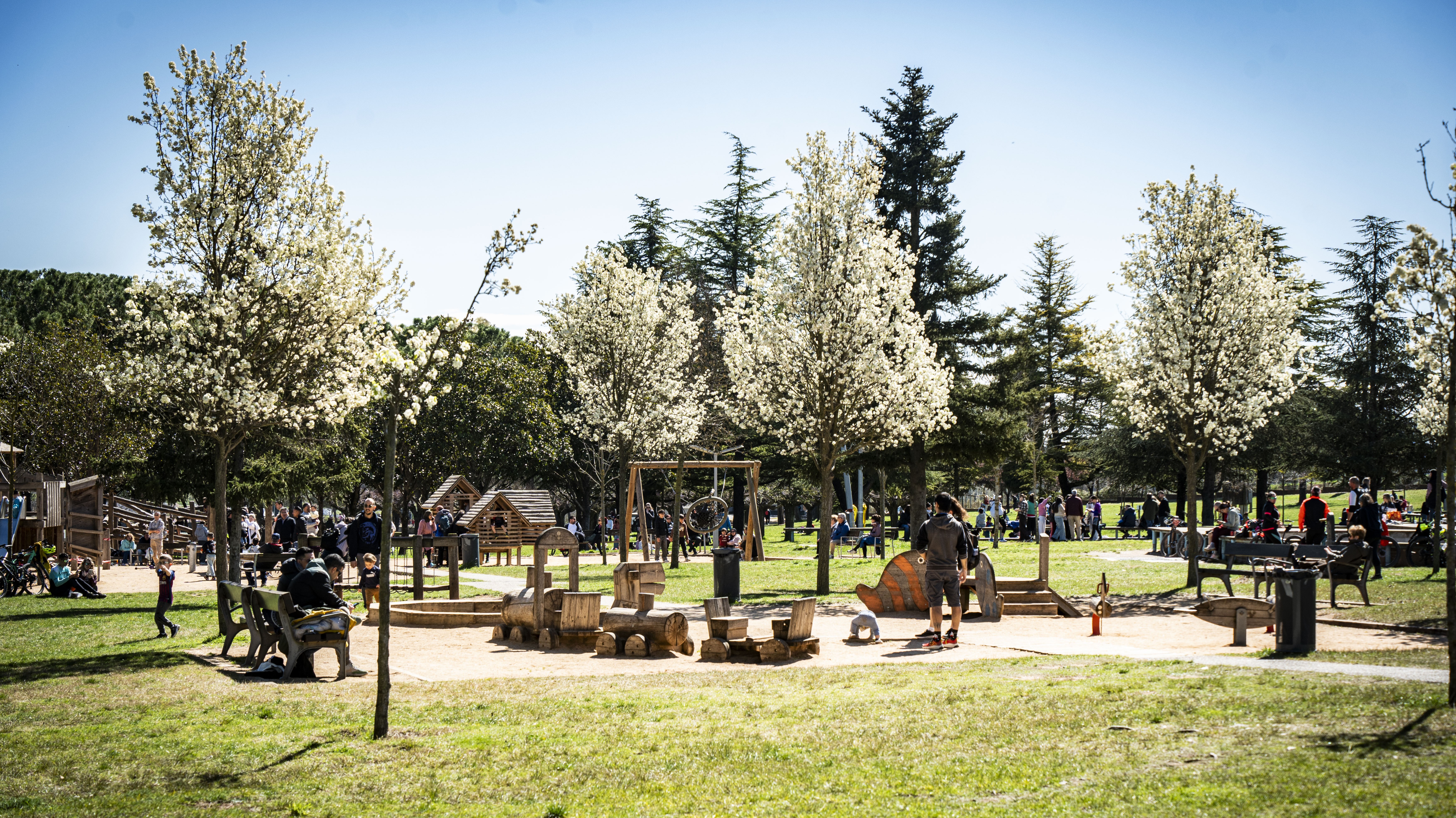 Fotografia dels arbres florits del Parc de l'Agulla, quin goig que fa el paisatge.