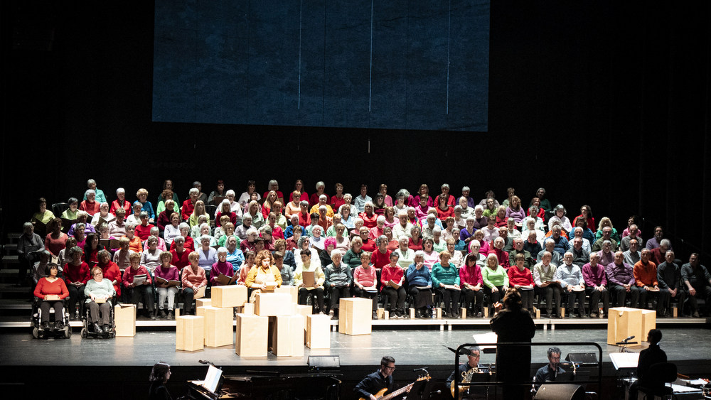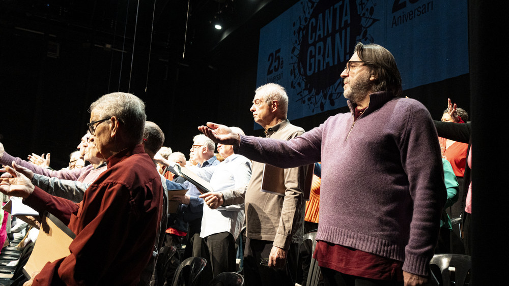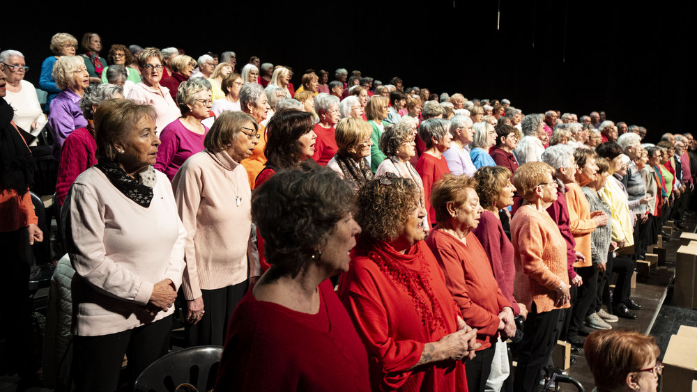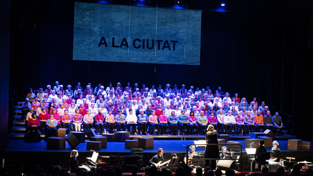 Nova edició de Canta Gran amb 'A la ciutat', una oda a la humanitat urbana. Dividida en onze cants, ens explica com un petit mas fet amb pedres d'un riu esdevé, al llarg del temps, una metròpoli habitada per la gent més diversa. Va ser un concert amb totes les corals de gent gran de Manresa i comarca.