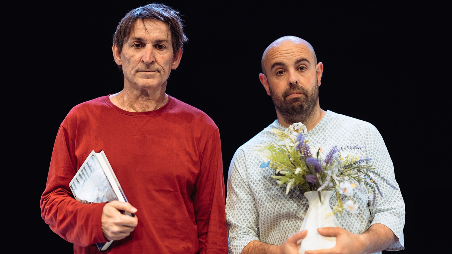 Amb les entrades exhaurides des de fa setmanes, aquest divendres, 24 d’abril a les 17 i 20 h, la Sala Gran del Kursaal acollirà dues funcions de la comèdia ‘Hamlet’ d’Albert Pla i en Peyu. Albert Pla i en Peyu s’han unit per fer una comèdia que té poc a veure amb l’obra de Shakespeare. Darrere el títol de ‘Hamlet’ s’hi amaguen els estira-i-arronses de la convivència de dos companys d’una habitació d’hospital: l’habitació 313 concretament.